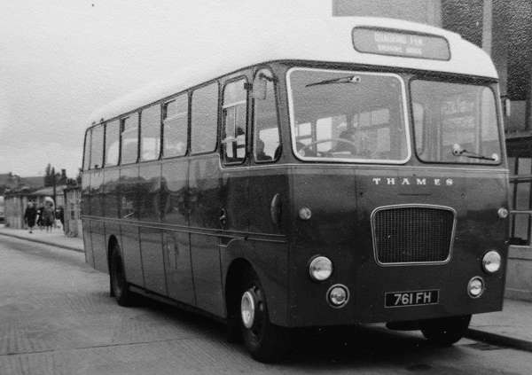 I cannot make out either the fleet name or the displayed destination of the Thames Trader bus in the second picture. If these details can be discerned from the original negative, they might help in finding out a bit more about this vehicle.