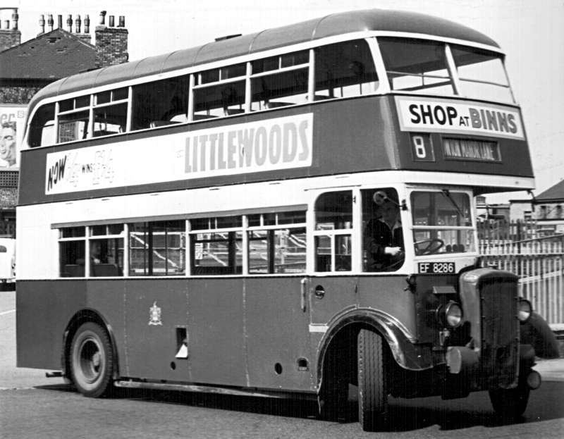 West Hartlepool Corporation registration EF 8286 fleet number 52 a 1948 Daimler CVG6 with a Roe H33/26R body. This vehicle started life with a Roe H28/24 center entrance body, but in 1958 it was rebodied by Roe to a rear entrance. (See Chris Barkers comment below.)