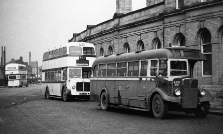 British Rail ran a staff bus between Sheffield Midland Station and Tinsley Marshalling Yard and at various times used this ex Mansfield District bus (fleet number 15), similar KRR 264 and KRB 88 which was an ex Midland General Leyland PS1 with a similar body. All ran in the colours of their previous owners. Later the work was contracted to Chesterfield Corporation who used one of their fleet of AEC Reliances to cover the duties.