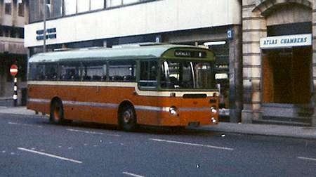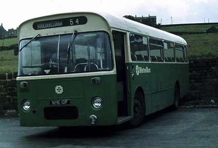 I have attached a photo taken of this bus on 19th June 1980 very close to final withdrawal by West Yorkshire PTE. It is at the reversing point at the small hamlet of Boulderclough high above the Calder Valley. It has a noticeably different frontal appearance from the earlier picture. This was a result of repairs following serious damage when it slid into a lamp standard in heavy snow causing a heavy impact to the centre front. Memory says that we obtained a new front dome from Willowbrook of a different profile from the Marshall original. Also I believe we removed the Clayton UHV heating system (the intake ducting behind the front panel would have been seriously damaged in the collision) hence the different lower level air intake grille.