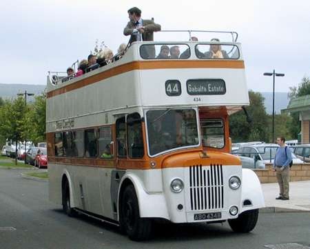 ABO 434B was originally closed top but as can be seen has since been converted to open-top for tours of Cardiff City and special events. The reverse livery really does justice to this superb vehicle. It was a popular ‘runner’ at the Bus & Coach Wales 2014 event in Merthyr Tydfil carrying healthy loads on some hilly terrain.
