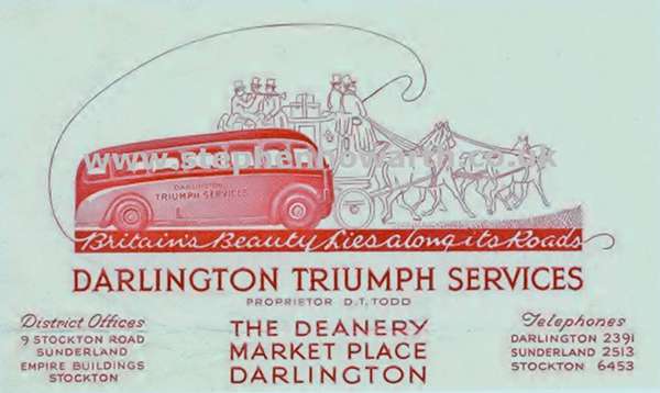 I thought you may like to see the rather nice letterhead of Darlington Triumph Services one of the operators bought to form Durham District Services.
