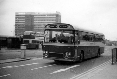 This East Yorkshire Leyland Leopard is on route to Bradford either from or via Birmingham I am sure that it was taken at Doncaster or maybe Rotherham it was 40 odd years ago, if you know let me know. This dual purpose or as my East Yorkshire fleet list calls it “Semi-Coach” had the Leyland 9.8 litre O.600 engine according to a sales brochure I have from Leyland the crank shaft was good for a ¼ million miles before needing a regrind which was very impressive.