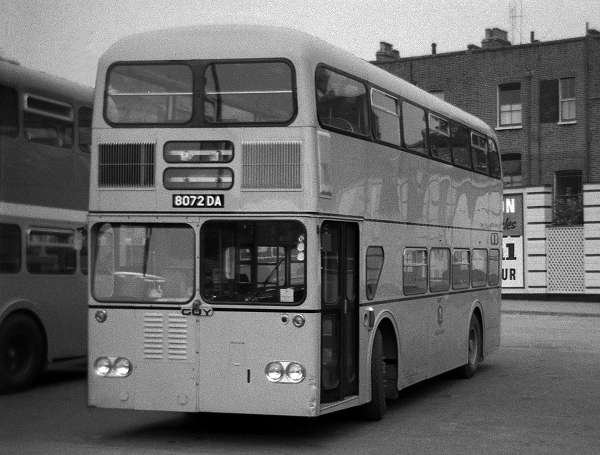 The origins of the Wulfrunian design appear to date from 1957 and the prototype, OHL 863, took to the road in 1959. It was quickly followed by two demonstrators, 7800 DA in 1959 and 8072 DA in 1960, both of which were painted in a vivid livery of yellow with black trim, the colours of Wolverhampton Wanderers. These demonstrators were tried out by several operators, giving some of them a fright or two in the process, but ultimately they failed to entice significant orders from anyone other than West Riding, who had been the motivating force behind the design from the start. It is said that the registrations of the demonstrators indicated the seating capacities of the Roe bodies, 7800 DA having 78 seats and 8072 DA 72 seats. It has also been suggested that the registration 8072 was intended as a nudge to Wolverhampton Corporation to buy it, the next vacant vehicle number in the Wolverhampton fleet being 72. In the event, if true, that ploy didn’t work. Wolverhampton did buy two Wulfrunians with East Lancs bodies, the second being one of the modified variety with centrally mounted engine and forward entrance, but then swiftly turned to purchasing the much more dependable Arab in its Mark V configuration. In this picture 8072 DA is seen in the demonstration park at the 1960 Earls Court Commercial Motor Show. Already, perhaps, the Guy company was becoming rather dispirited by the indifferent reaction of the bus industry to its complex brainchild. The nearside front corner pillar plainly shows some accident damage, presenting a less than confident face to prospective customers. In its last three years of independence, the Guy company had been losing money to the tune of £300,000 a year (about £2.5m today), largely because of a foolhardy decision to replace the commercially independent agencies in South Africa with its directly owned ventures. As early as 1959, two years after the retirement of its founder, Sidney Guy, the company’s board was warned that the firm would collapse if the South African fiasco was not terminated urgently. The advice was not heeded, and high warranty claims against production Wulfrunians then compounded the unfolding disaster. Guy fell into the hands of William Lyons in October 1961, and subsequently into the rapacious grasp of Donald Stokes of British Leyland. Despite then being, together with Land Rover, the only constituent of the Leyland group still making profits, the Wolverhampton factory was closed in 1982. To Stokes, Leyland meant Lancashire, and all other parts of the heavy commercial business would be sacrificed to serve the cause of the ‘home’ company’s survival. We all know how successful that policy proved to be. As for 8072 DA, pictures of this bus under evaluation with Southdown and Glasgow may be seen here:-