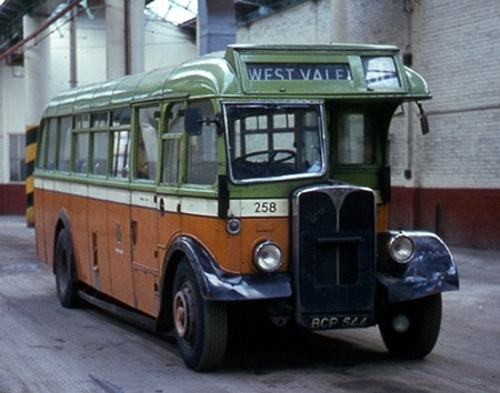 The uncanny thing about your photo is that aside from the fact that 258 was scrapped forty-odd years ago, it could have been taken this morning. Parked in what is nowadays referred to as 7-Bay at Skircoat Garage, the building is exactly the same – even to having the same shades of paint on the wall, though today it is maybe peeling a bit more.