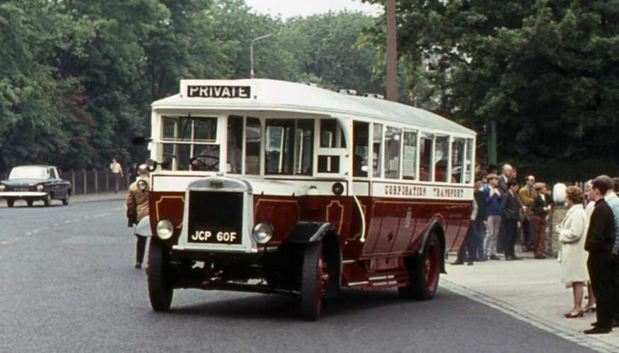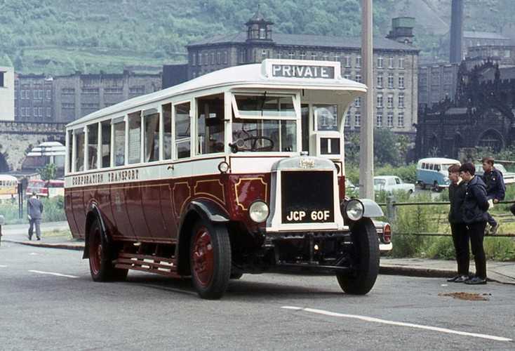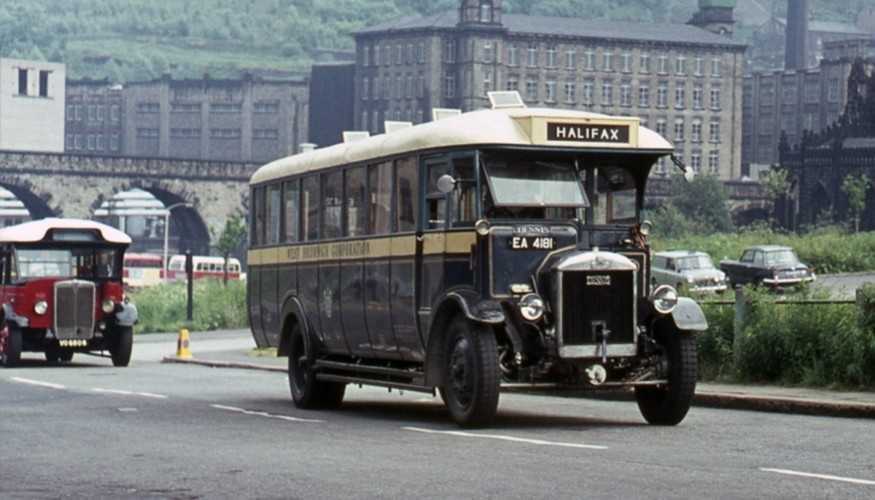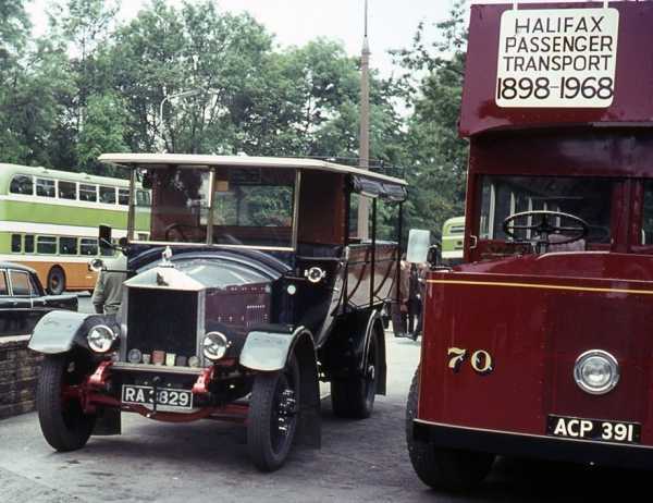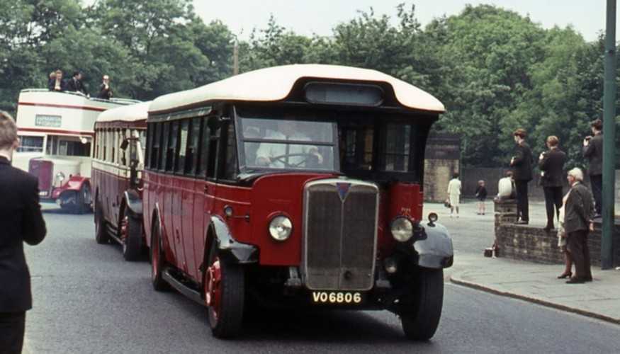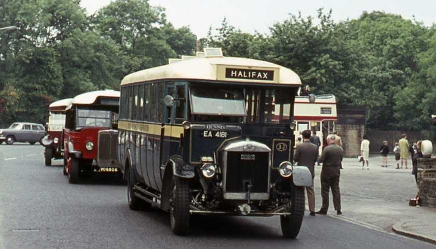 John is right about the identity of the “tram” in the Halifax Parade, as this uncropped shot showing it alongside the little Albion shows conclusively. ACP 391 was the very first bus that I ever drove, and, as I then had only a motorcycle licence, I found the decidedly heavy controls of this ponderous, well worn, open top veteran something of a shock.