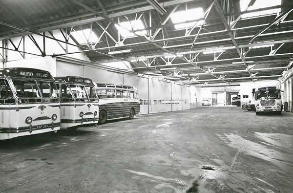 This picture is of the Halifax Depot (from Walnut Street end) of Hebble Motor Services Ltd. These premises were purchased in 1927 to house the expanding fleet.
