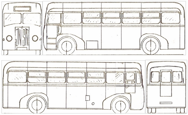 Drawing of the model produced by Myself in the 1960’s from photographs and an outline drawing.
