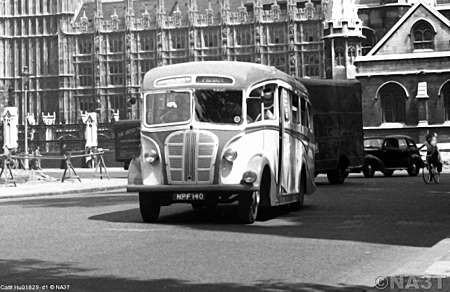 NPF 140 shown above was photographed in the large Croydon council estate of New Addington in 1960, and bore the trading name Karefree Travel about whom I know nothing. The livery bears a close resemblance to the 1948 Show exhibit – could it be the same vehicle, I wonder?