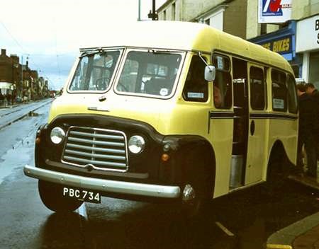 PBC 734 was new to Leicester City Council in 1956. It is a Karrier Q25 with Readings C14F body. If the note in the PSVC listing for 2012 is correct, it did not join the Transport Department, so was it some form of welfare vehicle or school bus? It’s 15 July 2001, a soggy day in Lord Street, Fleetwood, where it is visiting the Tram Sunday event.