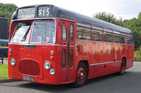 This was one of the second batch of S15s. Broadly similar to the S14 bus, these were designed as dual-purpose vehicles and featured bucket-seats and double rear wheels as well as, on this second batch, some chrome trim. Circa 1969 the batch was relegated to bus work after being repainted into the standard bus livery. While dual-purpose they had black roofs. In this shot 5056 is seen at the Black Country Living Museum in September 2014.