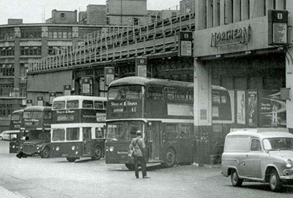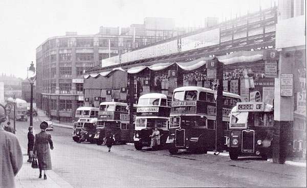 The barriers were actually perfectly adequate; in the 1960s shot (with United 40 on stand 4) this can be seen. Unlike so many modern bus stations, they provided for a clear queueing arrangement; intending passengers queued down one side then back up the other, continuing into the street if necessary, as illustrated in Ronnie’s third and fourth photos. Philip mentions ‘segregation of bus movement from passenger movement’ but this was in the days before everybody became obsessed with health and safety and it worked surprisingly well; if a queue was out into the street and a bus from a lower stand needed to be past, the queue parted (like the Red Sea!), the bus passed through and the queue reformed without any complaint. It should also be said that, although Worswick Street was a one-way street and open to all traffic, it wasn’t used by a huge volume of non-bus traffic. In Worswick Street’s heyday, the only bus station of similar design (i.e. multiple platforms) I knew which attempted to segregate buses and passengers was the 1958 station in Edinburgh’s St Andrew Square which ‘featured’ underground passageways between the platforms; most passengers, though, simply walked across the roadways anyway!