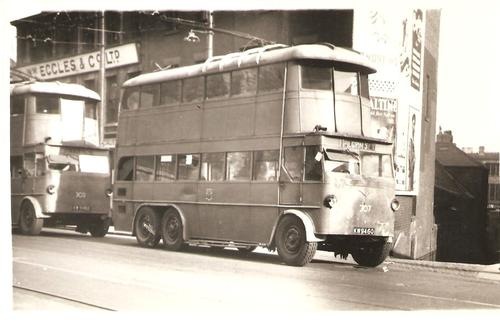 John Whitaker is not as far off the original subject as he seems to think he is, once again the picture is from Newcastle City Libraries, but it’s of two Bradford trolley buses ‘ten in total’ that wandered all the way to Newcastle, I’m not entirely sure of the registrations but I think were KW 5453/62. They were Dick KE/English Electrics’ built for Bradford in 1931, and acquired by Newcastle in 1942 where they became 300/9; I think they must have found their way to Newcastle as part of a wartime redistribution of resources, and I think they remained in service until about the late 40’s