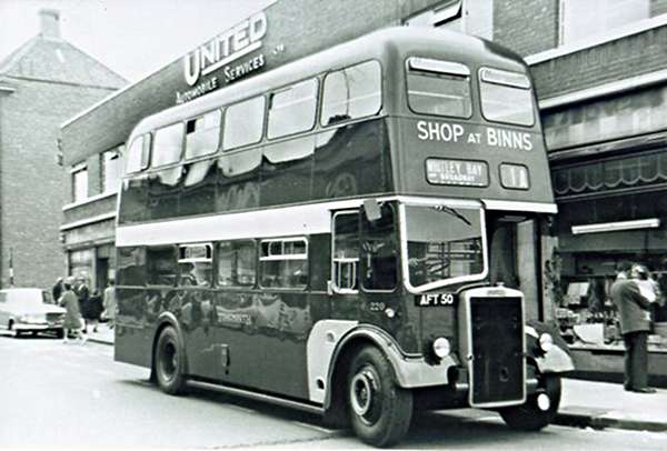 Still in 1958, six all Leyland Titan PD2’s – BTY 168/9 – 28/9 and CTY 330/33 – 30/33 were transferred from Tyneside; they were repainted in T&D livery but retained their Tyneside fleet numbers. Some were later transferred to Northern. Livery c1958