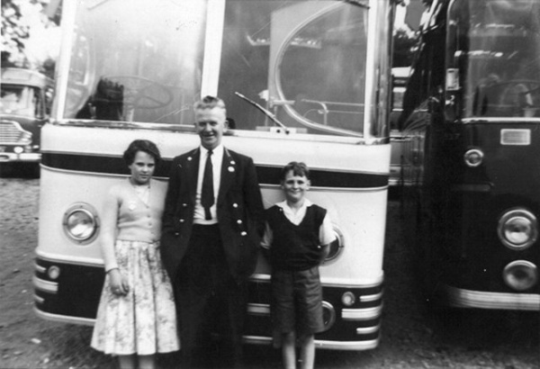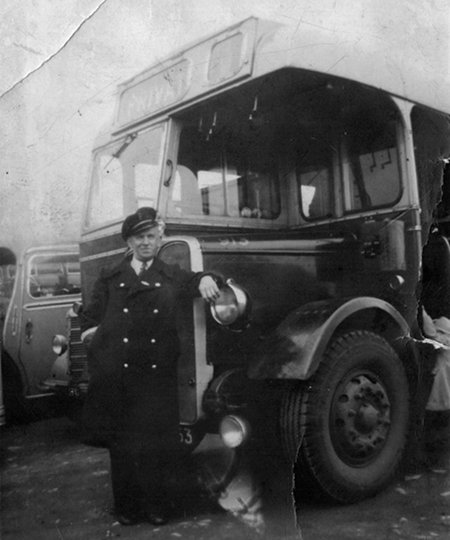 Early 1960s with his coach uniform on, they were nicknamed the ‘Chocolate Soldiers’ the bus is a Guy coach with an underfloor Gardner 6LW engine.