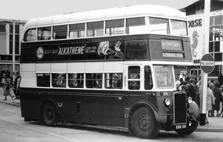 As I recall, and unlike the DD42/7’s, they seemed to be very coy buses in the fleet, usually working routes needing only one bus, or peak-time reliefs or, as here, at Clarence Pier, Southsea, working the Sea Front Service on a cloudy or chilly day in May 1961, in place of the open-top TD4’s.