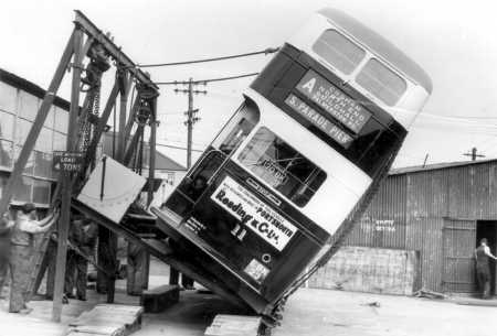 As it seems empty (look upstairs), do we take it that the rear suspension is a bit, shall we say, tired, or someone has left a very heavy parcel under the stairs? Or are all the passengers standing on the platform?