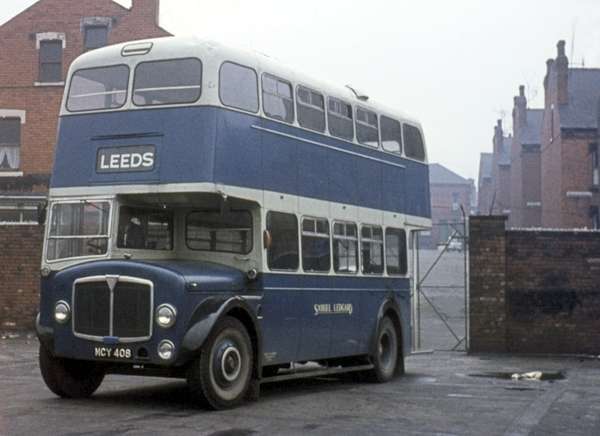 Seen in the dismal surroundings of Armley Depot, MCY 408 had only been acquired the previous year, along with three other similar buses. These had the AEC AV470 engine and very lightweight bodies, and were amongst the earliest Mk. V’s built.
