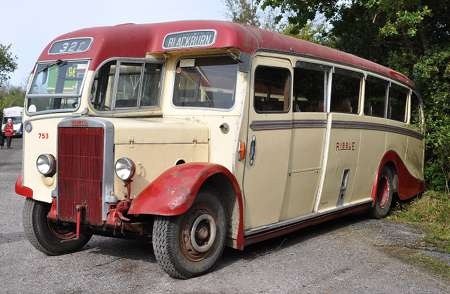 FV 5737, Leyland Tiger TS7, was new to W C Standerwick of Blackpool in 1936. In the post-war years, she was transferred across to the Ribble fleet and given this Duple C31F body in 1950. In the renumbering system, she became 753. She’s seen at the Winkleigh Open Day on 7 October 2012.