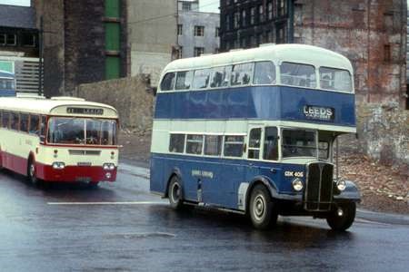A nice little anecdote, and a true one, goes with 401. When the batch was acquired this vehicle alone was sent to Otley depot for complete and prompt overhaul for early entry into service with the others at Armley Head depot. However its appeal and charms were instantly apparent to all, and in a very uncharacteristic “Luddite” operation the normally highly efficient overhaul process was delayed by a myriad of “difficulties” for a very considerable time. When the bus was eventually ready for certification the powers that be at mighty Armley, normally unbending in any way, for some reason capitulated and lovely 401 remained with us at Otley till the end of the Company. The initial very basic plans for the West Yorkshire Road Car Co takeover contained the allocation of WYRCC numbers for the whole Ledgard fleet – this scheme as we know was completely revised before the day, and so our Rochdale friend never became “DAW 1” (Double, AEC engine, Wide) after all.