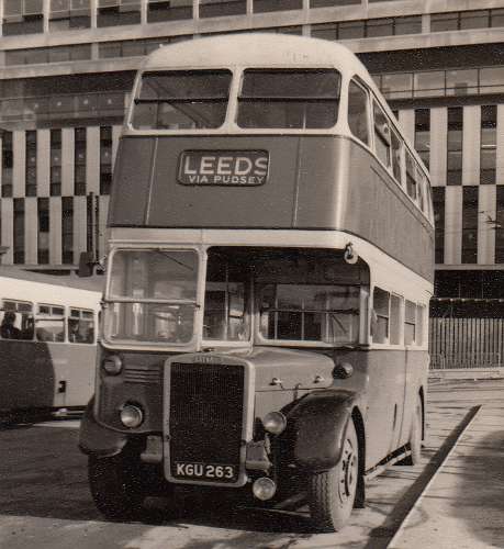 GUY 3 – after the acquisition of Kitchin’s the bus spent a short while at Bradford depot but sson found itself at Yeadon on the Horsforth to Otley services. I was once asked to collect it from Yeadon and do an excursion to Wetherby Races with it. It had just been recertified and upseated to 42. We had great sport in seeing the passengers’ puzzled faces as gears were pre-selected with its full size gear lever an engaged later with the gearchange pedal.