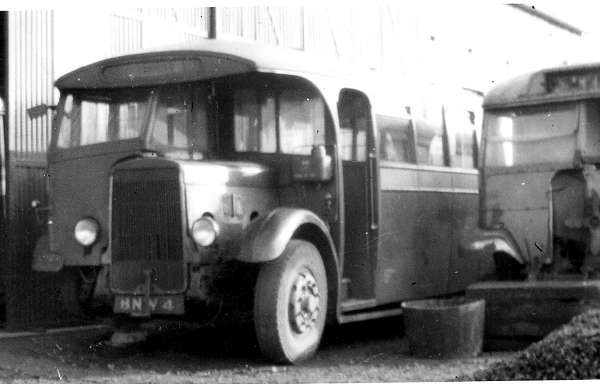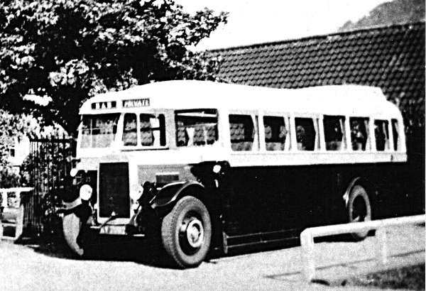 A very sad sight indeed – former G.F.Tate recently withdrawn in the depot yard at Yeadon (Moorfield) garage. Partly showing is one of the petrol Leyland Tiger TS2s which like many more, once the glory of coaching had faded, gave valuable and compeetnt service of the Horsforth to Otley bus routes – the bus is still in wartime khaki – the Avro factory where the Lancasters were built is scarcely a mile away !! (Photo R.F.Mack)