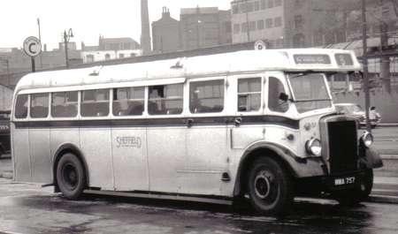 These used to my favourite Sheffield half cab single deckers. I always thought they looked really elegant-but that was from the frontal aspect. This photo shows them to have deep side skirt panels with correspondingly shallow saloon windows. A childhood impression shattered in one photo!!! The 6 to Kiveton Park would be converted to double deck operation in the mid 50s with the arrival of the lowbridge Weymann bodied AECs.