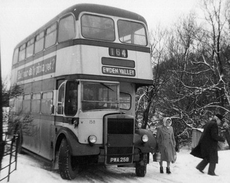 Sheffield operated a number of occasional services to small villages and hamlets to the north west of the City. Ewden Valley Village lay about a mile off the main Sheffield to Stocksbridge route 57 via a Sheffield Corporation Waterworks private road and was primarily home to workers at the adjacent reservoir. Service 164 was sparse but included this Saturday morning journey taken in February 1963 with a few villagers complete with shopping leaving Weymann bodied Leyland PD2/12 at the terminus in the snow. The bus which was allocated to Herries Road Garage was one of the 1953 B fleet batch of 26 such buses originally numbered 142-167 but renumbered later in 1963 with the addition of 2000 to their fleet numbers.