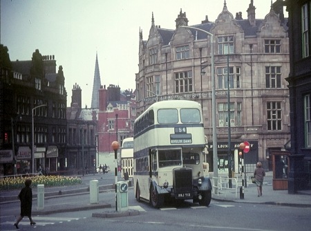 Can anybody please enlighten me on the road layout at this point in 1968. On the face of it, there is a roundabout with yellow flowers but behind PD2 No. 713 is a rear engined machine seemingly turning right into Church Street ‘wrong way’. Also, there is a ‘No Entry’ sign at the Leopold Street corner.