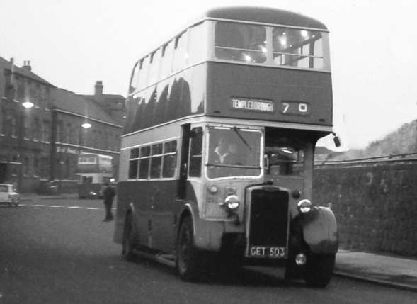 Rotherham Corporation 203 – GET 503 a 1951 Crossley DD42/7with a H30/26R Crossley body.