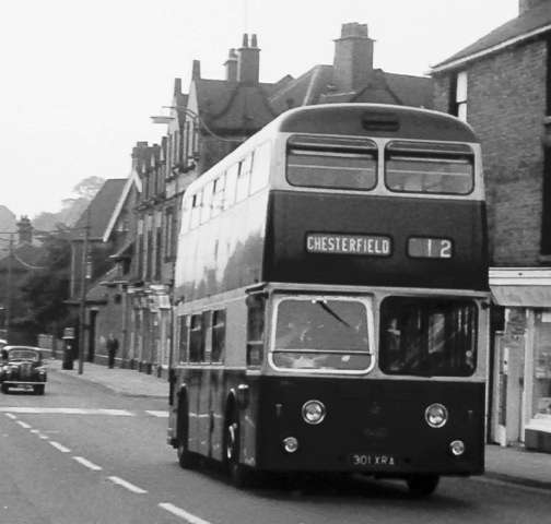 Chesterfield 301 seems to be near the bottom of Chantrey Road having just passed the Post Office and the Police Station (in the background) on the A61 in Woodseats. It will just have passed Scarsdale Road (cross roads) and the top of Woodseats Road both timing points for the many buses which passed this way. [11, 12, 38, 75, 2, 3 – and others I’m sure, but my memory fails me…..]