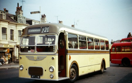 These dual purpose vehicles were purchased for the North East to London route it had coach seats and maybe a bit more leg room but apart from that it was still just a bus. I think when I took this photo in 1966 they had been moved on to shorter routes and replaced with something more suited for such a long distance. Dual purpose and coaches had a different livery in the United fleet as can be seen, it was actually a moss green and cream doesn’t show well on this photo better one coming soon.