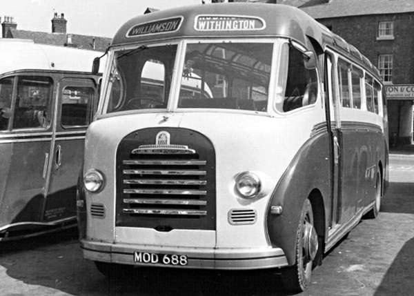 The strikes at Duple’s Hendon factory during 1951 threatened the future of the company at the hour of its greatest triumph and in order to apply pressure on the unions involved several small batches of Vega bodies were assembled by Brush at their Loughborough premises. This FS42 (MOD 688) was originally delivered to a Devonshire operator but later migrated northwards, first to Midway of Crymmych in South Wales, and then to Williamson of Shrewsbury as seen in this shot. The Brush examples were made from authentic Duple components and were visually indistinguishable from the real thing.