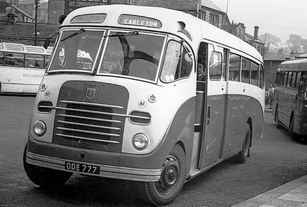 Two months after UNO 880 came into the world this L4MA8 with the 39 seat bus version of the lookalike body (FS44/1) was delivered to Morrison of Tenby (South Wales). ODE 777’s later owners included Gillard of Normanton (West Riding), Martin of Caerphilly (South Wales), and then three further operators in the West Riding of Yorkshire; Mosley of Barugh Green, Laycock of Barnoldswick (as seen in this shot), and Hillcrest of Settle. (Photographer unknown)