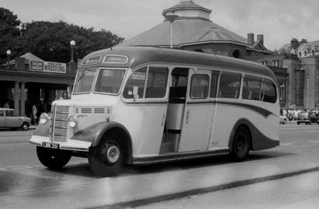 The coach was new as LMN 261 in July 1949 to E Bryan, Douglas, Trading as Tynwald Motors. It was fleet number 2. to T.W. Bryan, Douglas 6/53; to M. R. Fargher, Peel 2/60; to H.B. Clague, Douglas 5/63; to M.J. Corkish, Douglas 4/66; to Downward, Douglas 12/67; w/d 11/68; to contractor’s site office, Onchan 11/68; scrapped ?/??