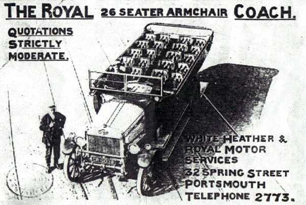 The White Heather was founded in 1920 by Frank Thomas Brook, being part The White Heather and Royal Motor Services at 23 Spring Street, Portsmouth. Tel Portsmouth 2773.