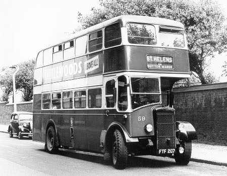 58 and 59 were the only two in the fleet with the side gangway upstairs (handrail visible on 59), the seats being four in line on the nearside. 58 was a more decrepit unit so was probably in original form? My grandmother would never travel on upper decks as smoking was allowed, hence the ventilators. Downstairs she would try to avoid the offside seats on these two as headroom was restricted because of the sunken gangway upstairs. I witnessed many a cracked skull.