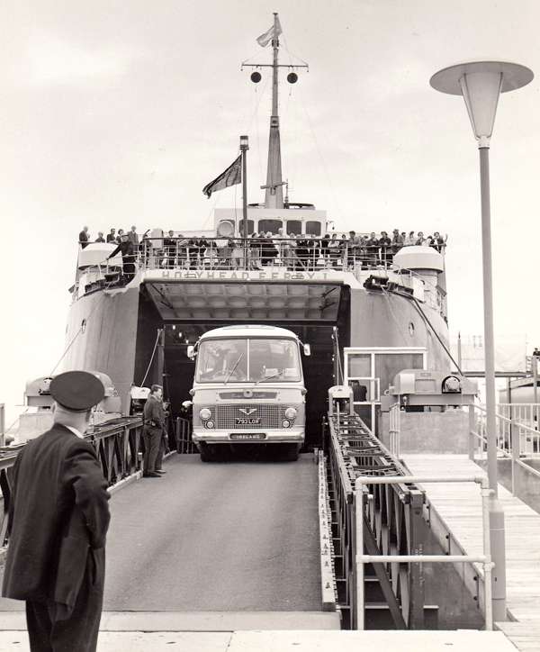 Skye Ferry: One of the six Bedford SBG / Duple Vegas, ROE 234-9, new 1955. Seating capacities varied between these six coaches, one being C28F, two C29F, two C35F and one C36F.