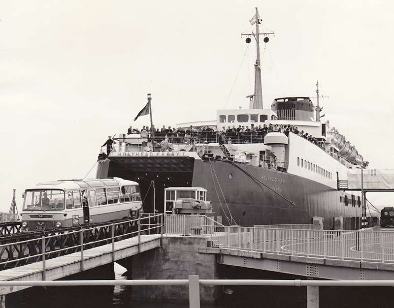 At the Holyhead Ferry: Appears to be 793 LOX, one of four Ford 570E / Duple Trooper C40F, 793-6 LOX, new 1964.