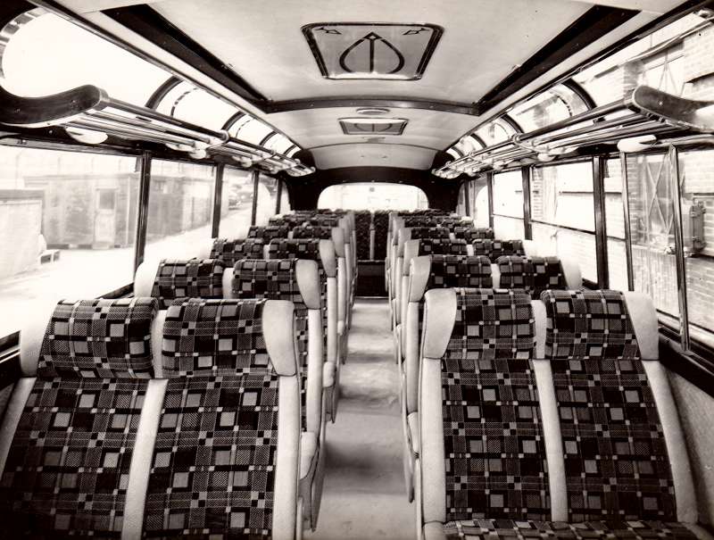 Interior seating: I’m struggling to relate this interior shot to a vehicle type. Presumably pre-1955 because of the absence of rear quarter lights, but I can’t match the cant rail glazing. Possibly one of the non-Duple SBs?